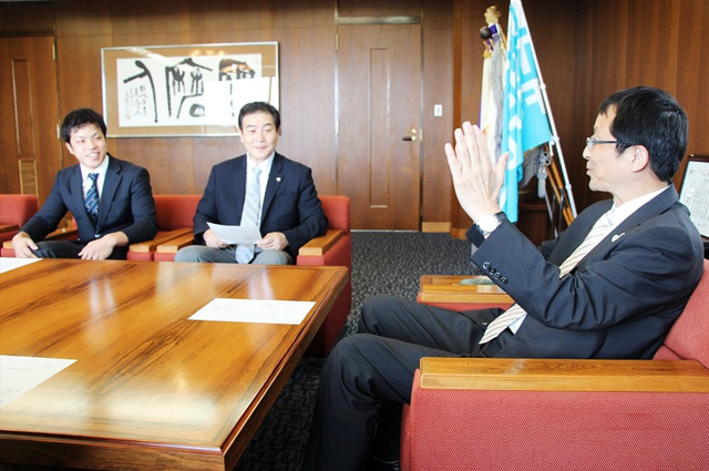 第63回全日本学生剣道選手権大会で優勝した本学剣道部 林田匡平選手(体育4)が、7月16日、永田学長へ表敬訪問し優勝報告を行いました。