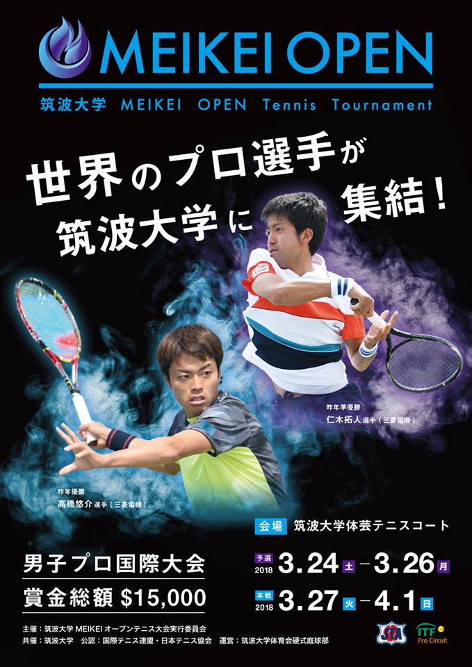 明日3/24(土)から9日間に渡り、『筑波大学MEIKEIオープンテニス』が開催されます!この大会は世界を目指す若手プレイヤーの登竜門ともいうべき大会です。